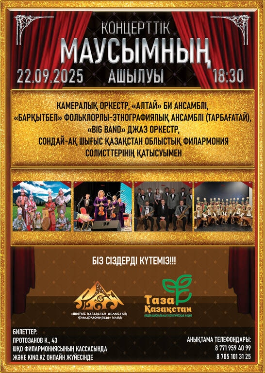 «Шығыс Қазақстан облыстық филармониясы» КМҚК солисттері: ҚР еңбек сіңірген әртісі Вячеслав Ткач, ҚР Мәдениет қайраткері Альмира Нұрғожина, Мәдениет саласының үздіктері Айжан Мазкенова, Жанат Бисимбаев, Ботагөз Жұмабекова, республикалық және