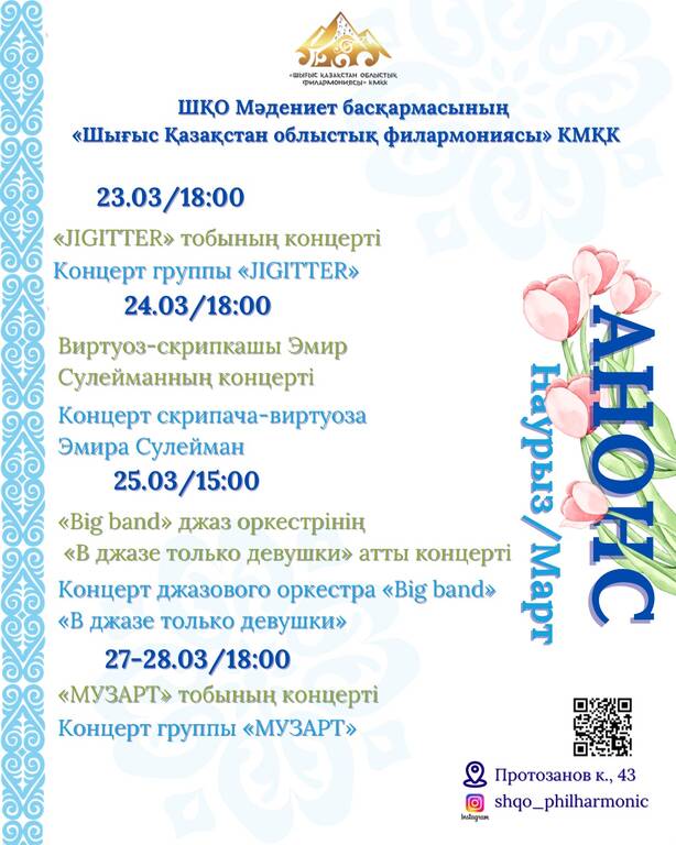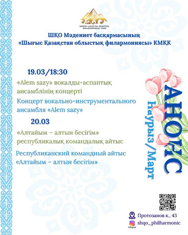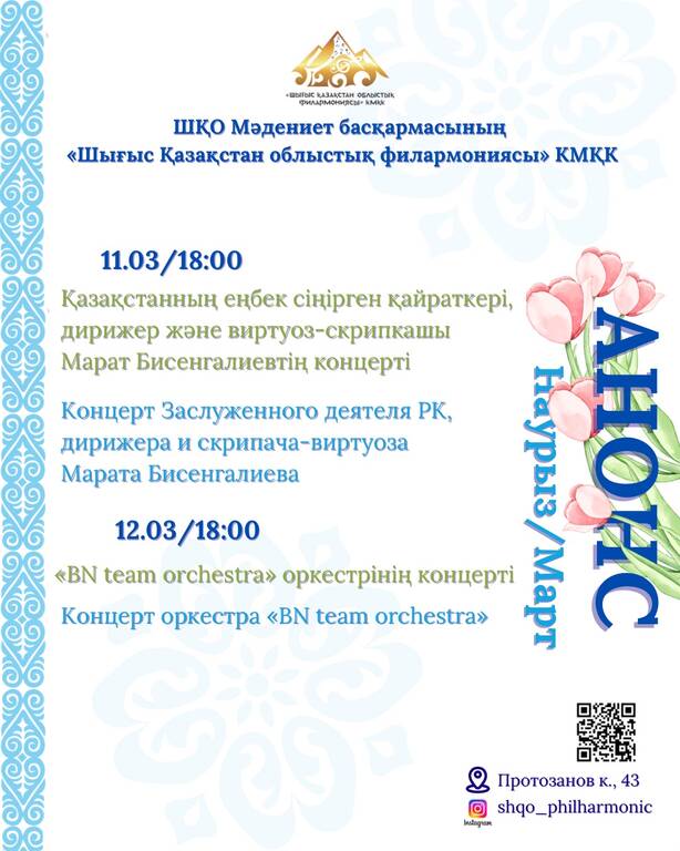 Өтетін орны: ШҚО филармониясының концерт залы