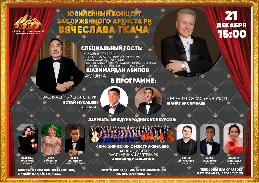 ????21 желтоқсан күні сағат 15:00 ҚР Еңбек сіңірген әртісі Вячеслав Ткачтың мерейтойлық концертіне шақырамыз!