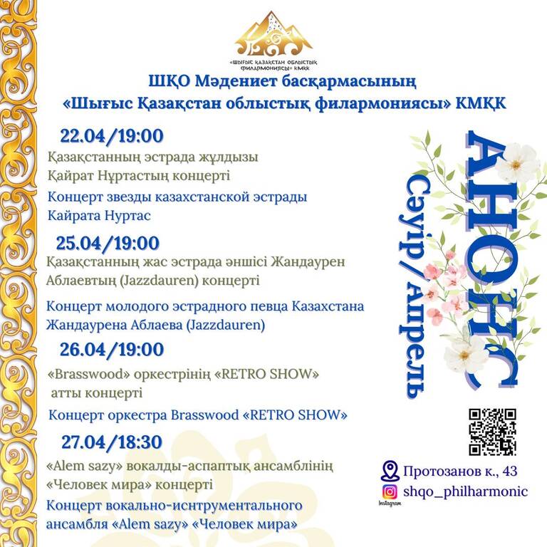 Өтетін орны: ШҚО филармониясының концерт залы Протозанов к., 43