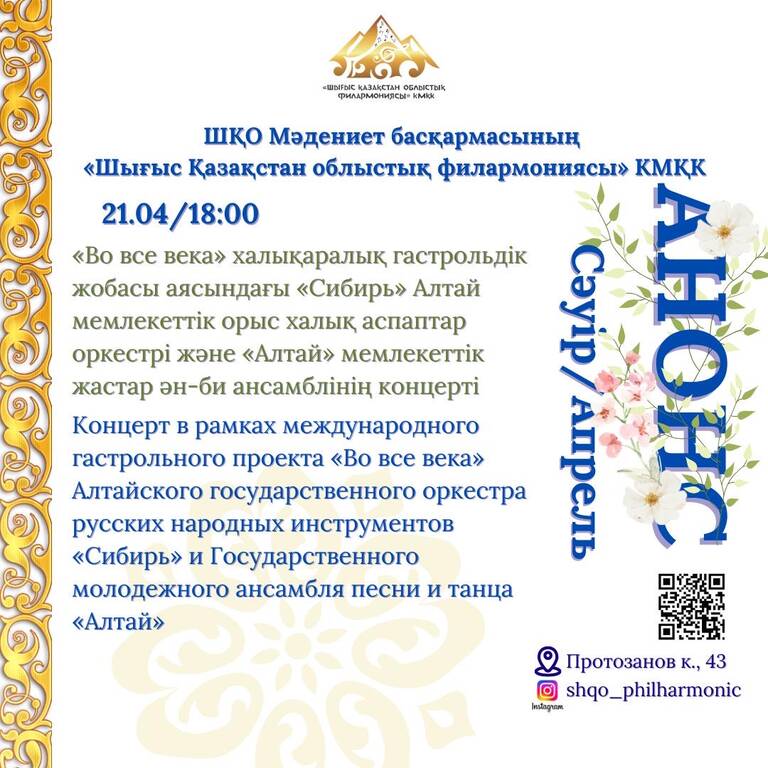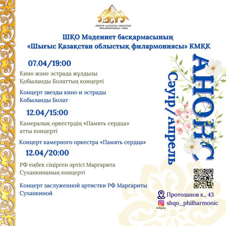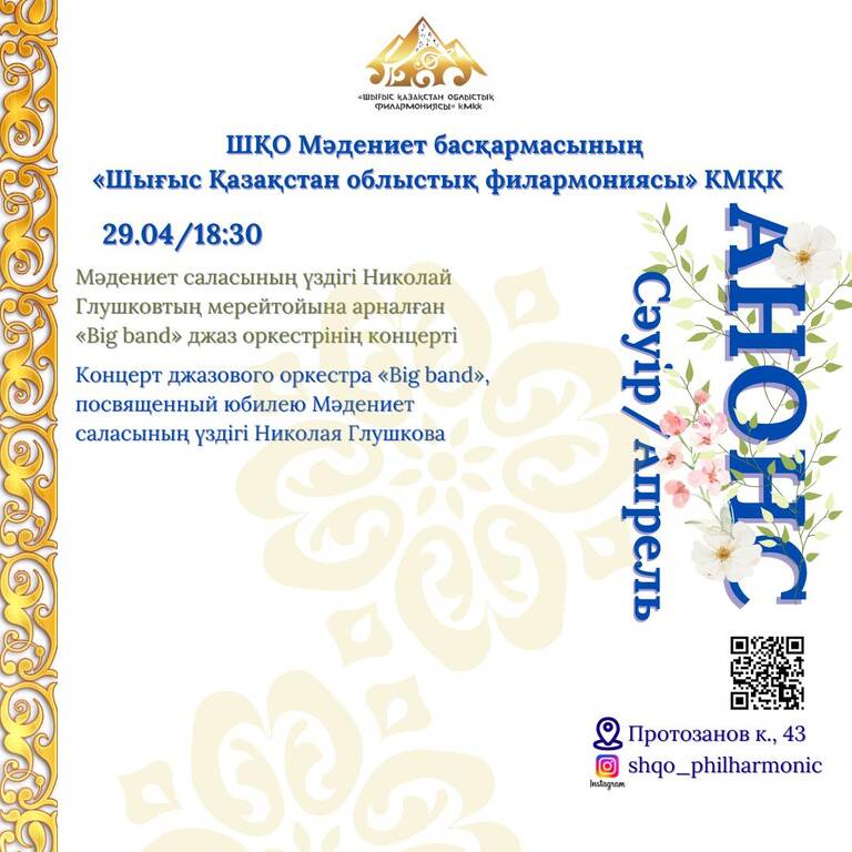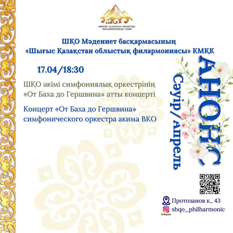 Өтетін орны: ШҚО филармониясының концерт залы Протозанов к., 43